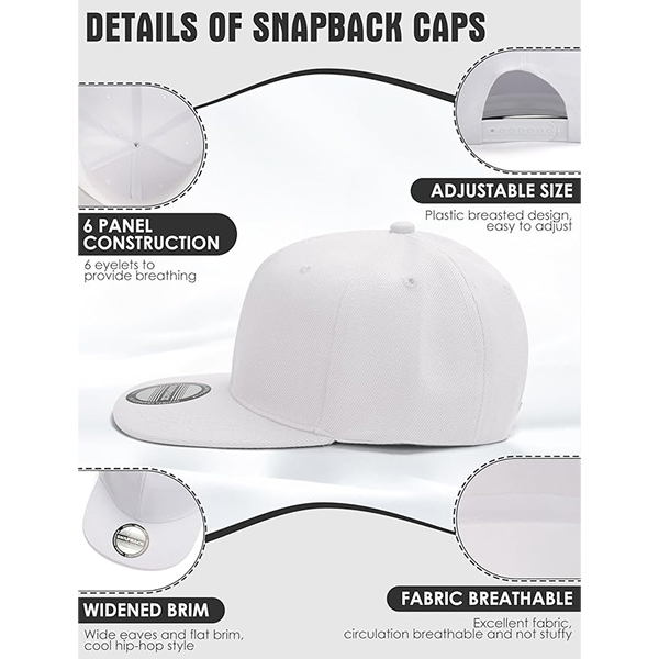 Quality and Comfortable: Crafted from 100% acrylic, these snapback hats are designed for comfort and durability. The 6-panel construction provides a structured fit, while the lightweight material ensures you stay comfortable even during extended wear. Whether you’re out for a long day or relaxing, these hats will not tire you out, making them great for all-day use.