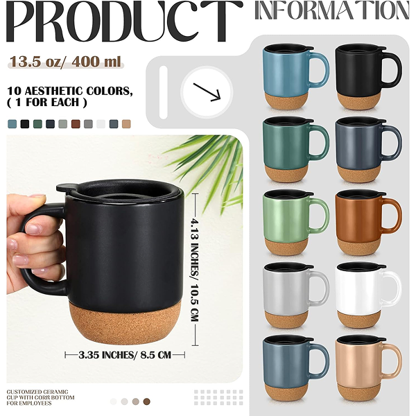 Morandi Color Mug Sets: this package contains 10 pcs large ceramic coffee mugs in a different matte grey aesthetic neutral color, each tea cup with a flat bottom cork base, large handle to hold your coffee more comfortably, and spill proof lid