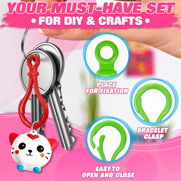🟠Comfortable Size: Our plastic clip keychain hooks for crafts measure 1.86 inches long and 0.97 inches wide. Each pack includes 100 colorful plastic rings for crafts, perfect for various uses