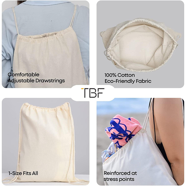 These lightweight drawstring backpacks are made of 6 oz.100% cotton fabric.
