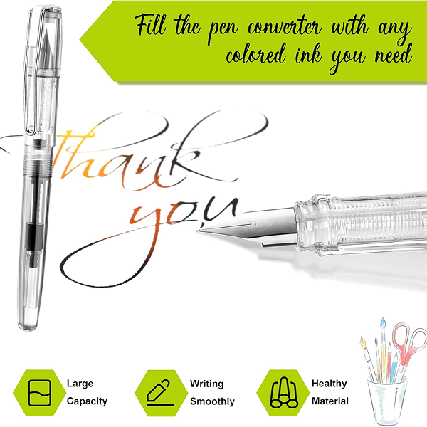 Quality Material: These extra-fine fountain pens are made of reliable plastic and metal, sturdy, rust-resistant, effortless to clean, and hard to deform. They work well in filling ink, and even a small amount of ink can be absorbed to reduce waste, making ink filling no longer difficult