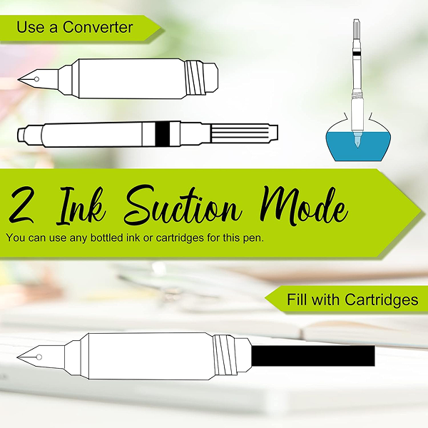 Easy to Clean: the interface of the fountain pens for writing is easy to disassemble, clean, and install; It can be directly washed with water, and the inner wall and needle can be cleaned by inhaling and pushing out water several times, so as to avoid ink color confusion