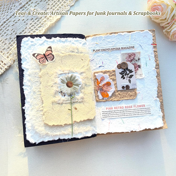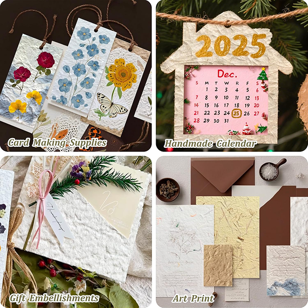 Handmade Craft: Each textured paper sheet is made using traditional artisan techniques. The embossed paper is durable, with natural fibers creating unique textures. Gently tear an edge to feel the authentic handmade quality
