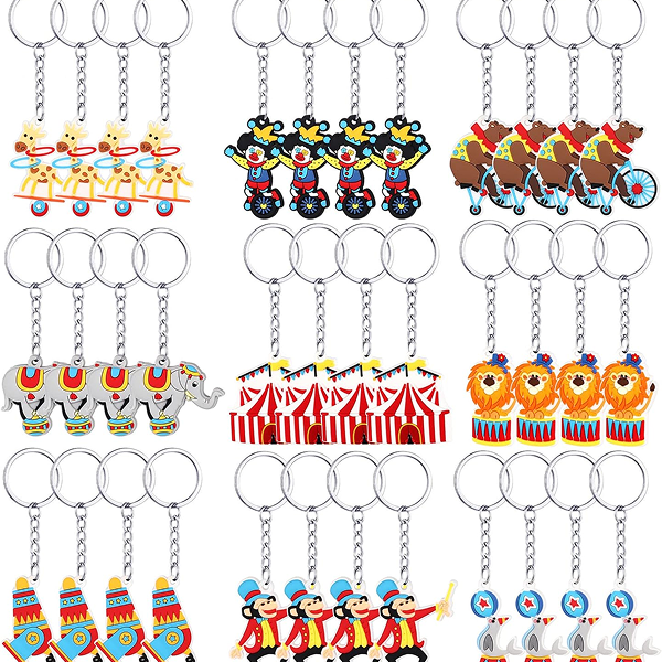 Satisfy Your Changing Demand: you will receive 36 pieces of circus carnival keychains in 9 designs, 4 pieces for each design; Sufficient quantity and styles can meet your various decorative demands