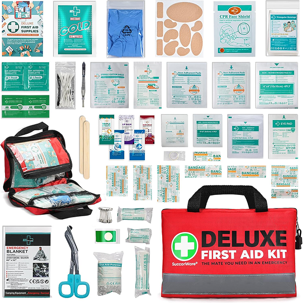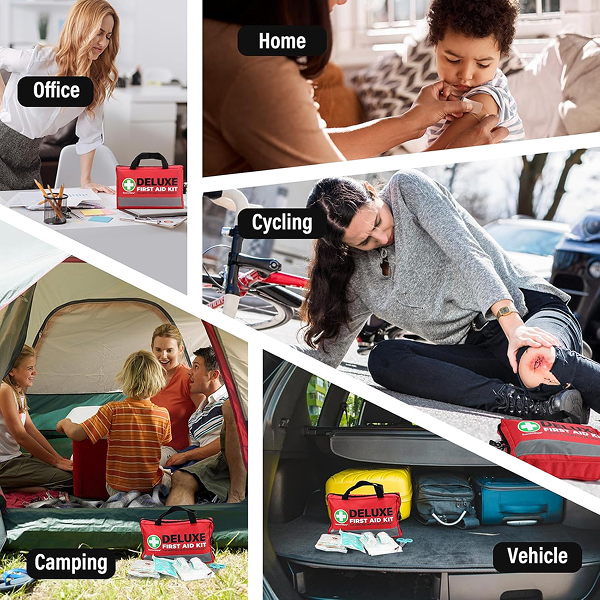 Comprehensive First Aid Kit: This first aid kit features 380 pieces essential items including various bandages, gauze rolls in different sizes, instant cold packs, medical scissors, emergency blankets, and etc., ensuring you are fully prepared for any emergency situation