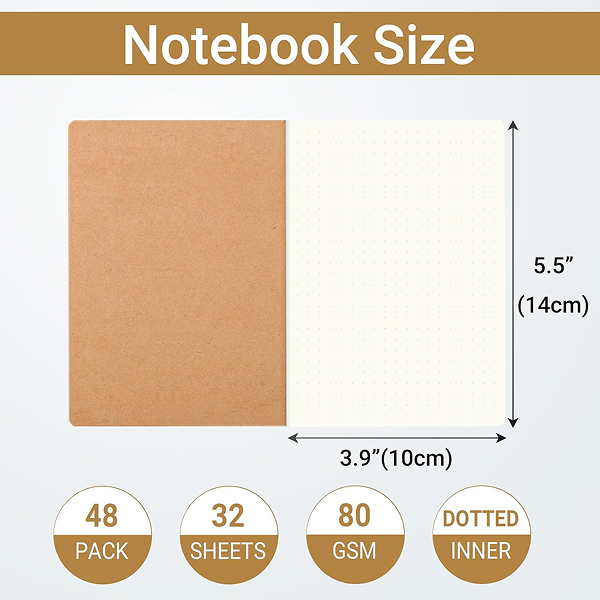 Material: Kraft dotted notebook is made of 80gsm paper, which writes smoothly and prevents ink bleeding. Light yellow paper makes eyes feel a relaxed feeling