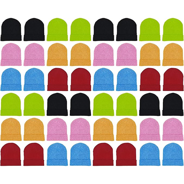 BULK 48 PACK: One size fits all men and women. Made with premium 100% Heat Insulating Acrylic. Your purchase will include 48 beanies which is great for gifting, donations, charities, schools, and keeping your loved ones warm.