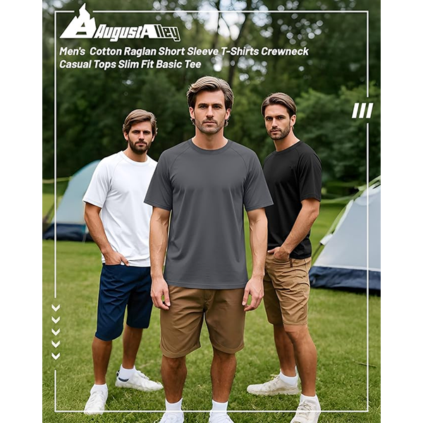 Men’s Raglan Short Sleeve Tops: The raglan sleeve design is both casual and fashionable. It can make the shoulder line smoother and modify the body proportion. Whether you are in daily activities or fitness occasions, you can easily show your charm