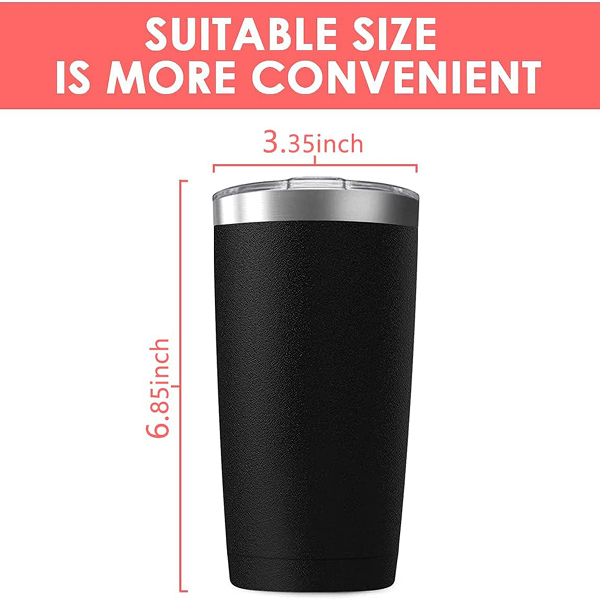 DOUBLE WALL VACUUM INSULATION: We offer this 20OZ insulated tumbler with a double-wall vacuum-insulated body and a purely stretch-formed liner that is incredibly good at heat preservation. Every tumbler was tested to guarantee its high vacuum degree to keep your drinks cold and hot for several hours.