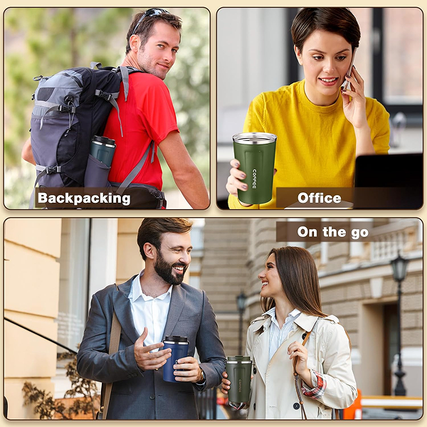 Quality Material: made of 304 stainless steel and the double walled insulation design, portable coffee mug is suitable for any hot or iced beverage such as coffee, cola, milk, tea, juice and can keep it warm/ cold at least 4 hours. Note: It is not recommended to use the dishwasher to clean, ordinary water can be washed