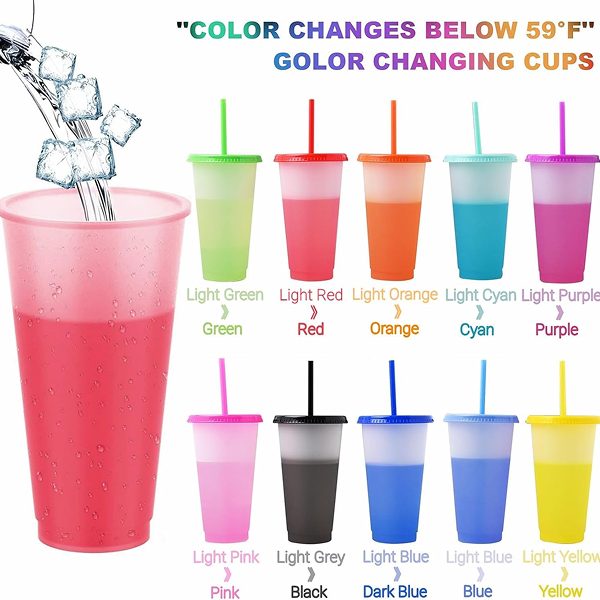 Plastic Cup Set: You will get 60 colour-changing cups with straws and lids in 10 different colors. Each cup measures 18 x 10 x 6 cm/7 x 4 x 2.3 inches and holds 710ml/24oz, enough quantity and capacity to meet your daily needs.
