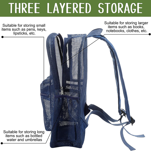 Versatile Functionality: whether you’re working out, taking short trips, camping, hiking, enjoying beach days, or simply commuting, this see through mesh backpack meets your needs and serves as a reliable travel companion