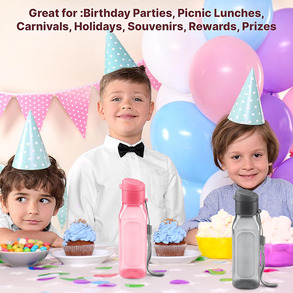 Multipack for the Entire Family: These plastic juice bottles are available in multipack options, in assorted colors, which makes them perfect for both kids and adults. The square design allows easy organization and storage wh