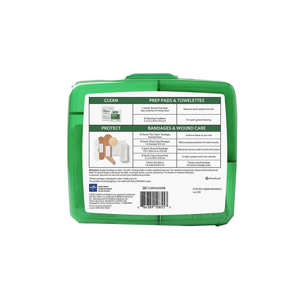 Trusted CURAD quality: features sterile bandages, adhesive tape, gauze pads, and antiseptic wipes for reliable wound care
