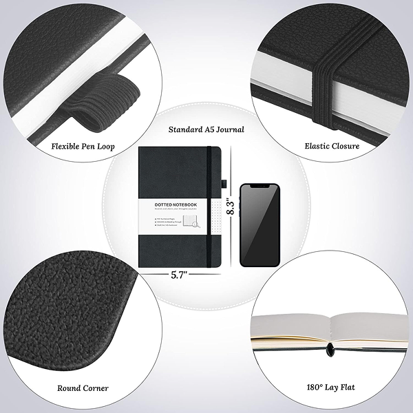 Dotted Notebook: Durable vegan leather material for you to decorate the cover freely as a personalized journal. Solid thread-bound notebook helps lay flat to write easily for both right and left-handed users and prevents detaching.