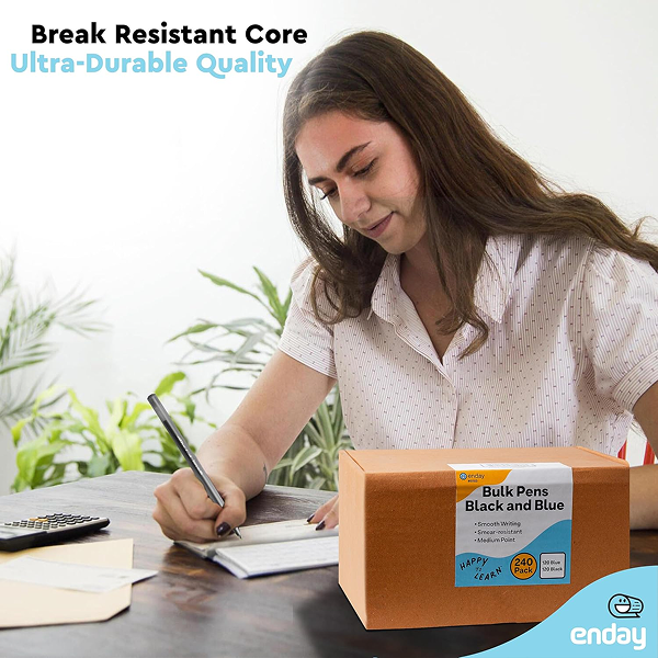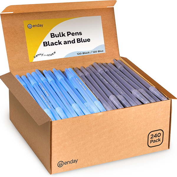✓DESCRIPTION – This Bulk pack of ball point pens includes 240 medium point 1.0mm ballpoint pen, 120 black and 120 blue pens. The bulk pens are easy to use and provide smooth writing, ideal for everyday use.