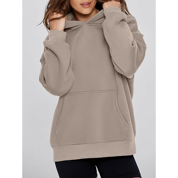 The iconic loose oversized hoodie – but kind of different, Because this cute trendy comfy sweatshirt has a kanga pocket and ribbed trim for that sort-of-sporty look.