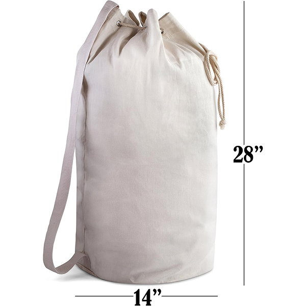 PRODUCT DIMENSIONS: This extra-strong canvas duffle bag measures 28 inches X 14 inches.