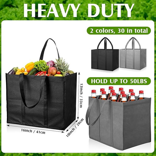 Heavy Duty: our non woven fabric large grocery totes have wide and long reinforced handles that cross stitched for durability, you can carry them easily by hand or over the shoulder; These tote bags can hold up to 45 lbs things, won’t easily break