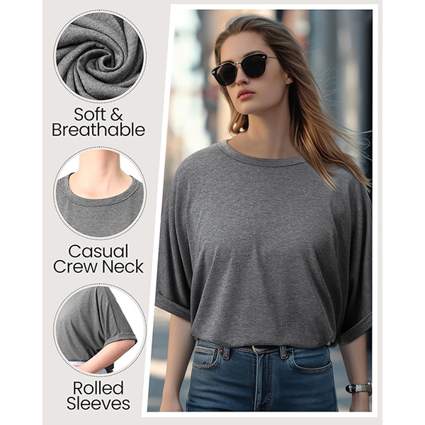 Stylish and Easy to Pair: featuring a flattering spoon neck design, rolled sleeves, and an oversized style, these casual T shirts bring a stylish casual appeal to your wardrobe; Whether you pair them with jeans, shorts, skirts, leggings for a stylish summer look or worn under a jacket in winter, they deliver an easily stylish look