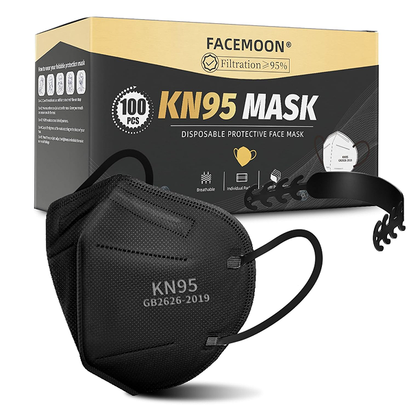 5-Layer Protection: Our black KN95 masks comply with the GB2626-2019 standard, featuring a durable 5-layer construction: 2 layers of polypropylene non-woven fabric, 2 layers of melt-blown filter, and 1 inner layer of non-woven cotton. This design provides strong protection with filtration efficiency exceeding 95%.