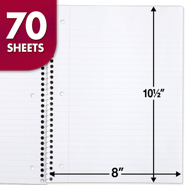 1 subject notebook comes with 70 wide ruled, double-sided sheets. Wide ruling is ideal for the younger student who needs more space between lines.