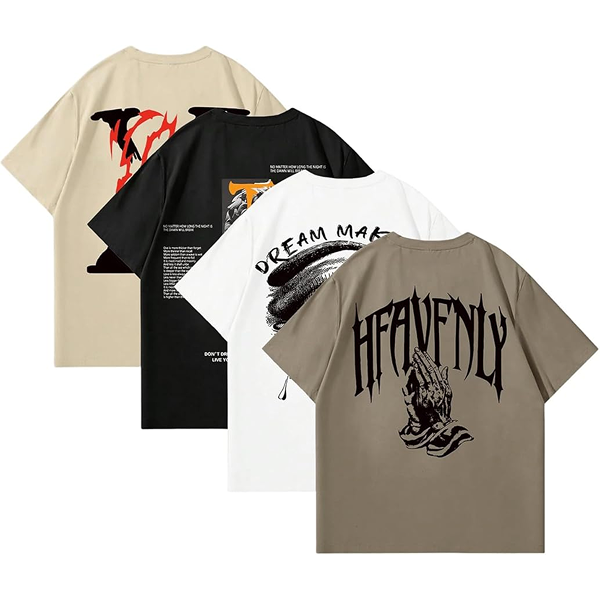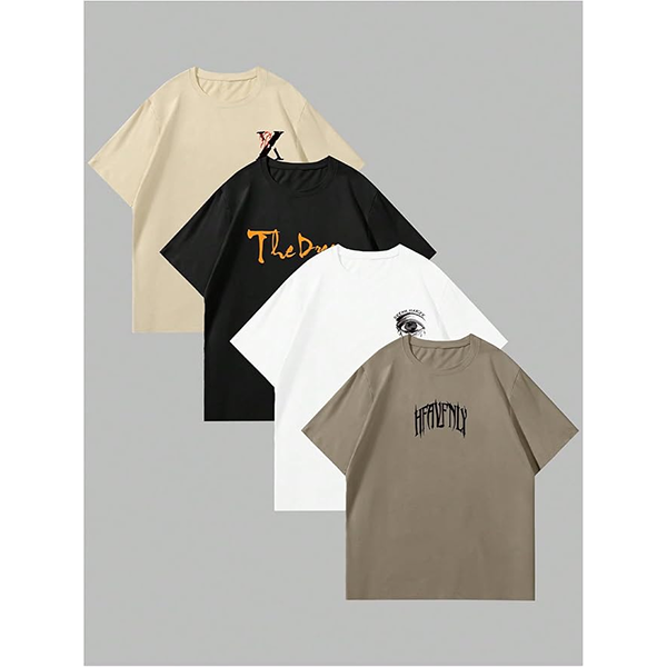 Graphic tees for men, 4 piece, short sleeve, round neck, letter print, y2k style, summer cool shirts