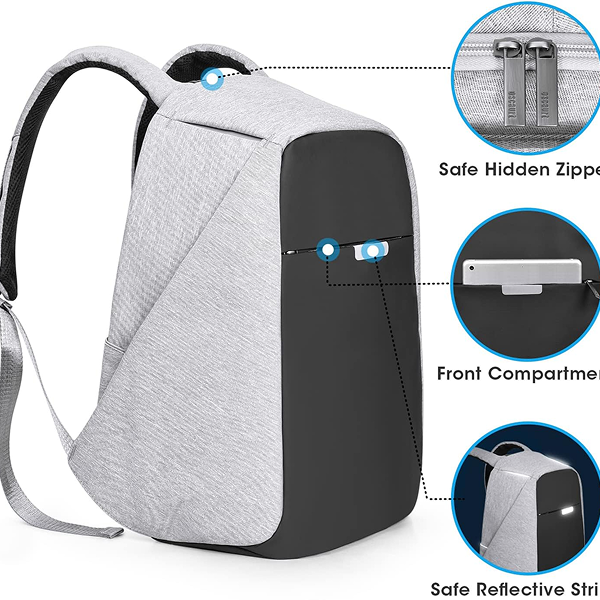 Anti-Theft Backpack: Made of strong anti-scratch /-cut fabric, this work backpack keeps your belongings pretty safe with hidden zippers of the main pocket and a secret pocket at the back