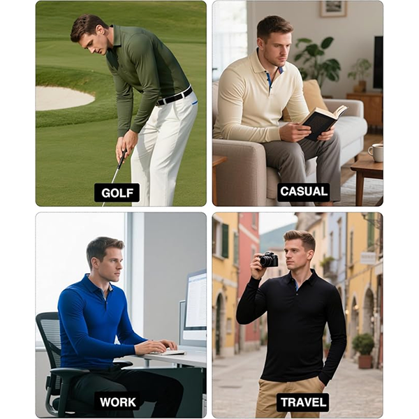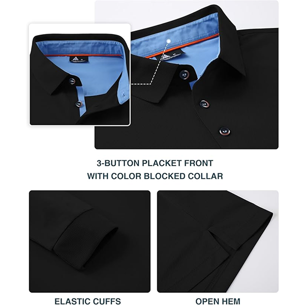 Material: 3 pack long sleeve polo shirts for men are made from 95%Polyester, 5%Elastane. They are lightweight and breathable. The fabric is also very soft, making it suitable for all-day wear. Ideal for wearing in spring, summer and autumn