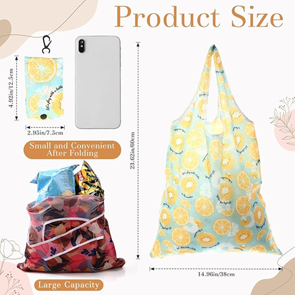 Large Capacity Foldable: the unfolded size of the shopping bag is about 23.62 x 14.96 inches/ 60 x 38 cm, which can easily hold daily shopping items, and the folded size is about 4.92 x 2.95 inches/ 12.5 x 7.5 cm; It can be put in a pocket or purse, which is convenient to carry and store without taking up too much space