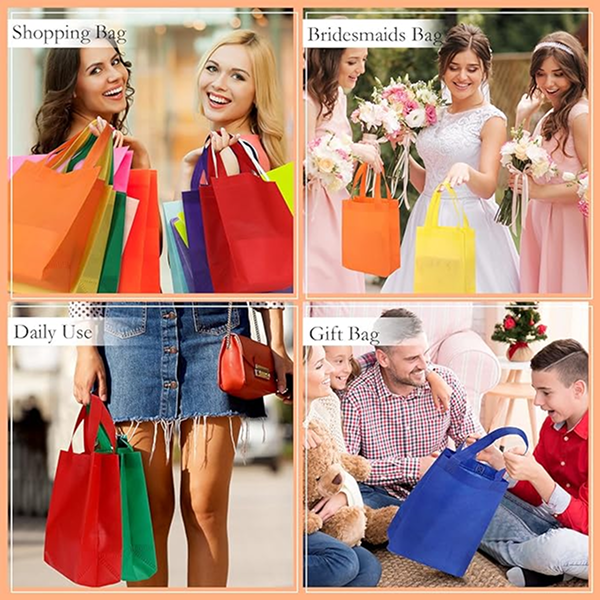 Sturdy and Reusable: reusable bags with handles are made of quality non-woven, sturdy and reusable, not easy to tear or break, stronger than plastic or ordinary materials, lightweight and portable, washable and not faded. With reinforced thread handle area stitching, they can hold many items without breaking