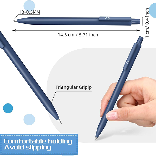 Elegant Design: the triangular grip design of the mechanical pencils with erasers can guide a comfortable holding posture and avoid slipping; And the smooth barrel and light weight provide an enjoyable and efficient writing experience