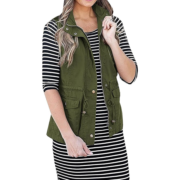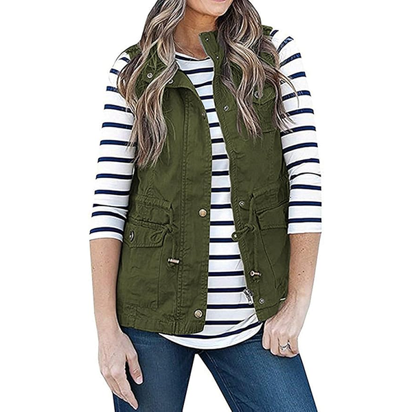 Design: This military vest is the must have this season, you will be reaching for this over and over, this women casual vests is perfect for layering without the bulk and it has a cinch waist and pockets to stash your keys and phone
