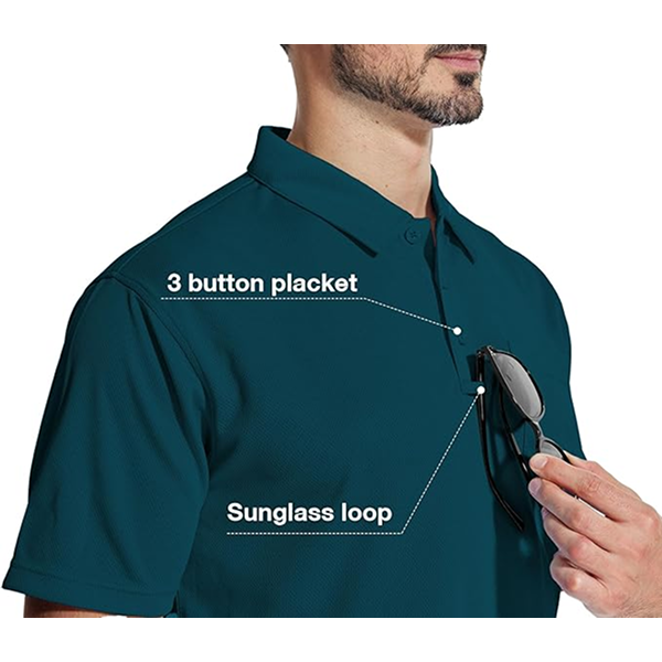 Classic Design with Added Practicality: Featuring the classic 3-button placket and side vents, this Polo shirt also includes a chest pocket and a handy glasses loop. The pocket is great for storing small items, while the glasses loop makes it easy to hang your sunglasses or other accessories, adding a touch of practicality to the design