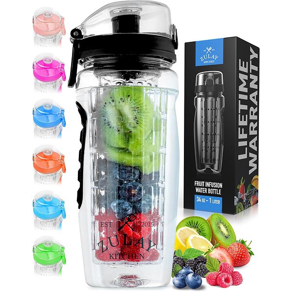 FREE RECIPE eBOOK: Our filtered water bottle comes with a recipe eBook that gives you 11 flavorful infuser recipes to get you started with your everyday hydration. Refill this 34 oz large water bottle with different combinations to come up with your favorite tasting infusion.